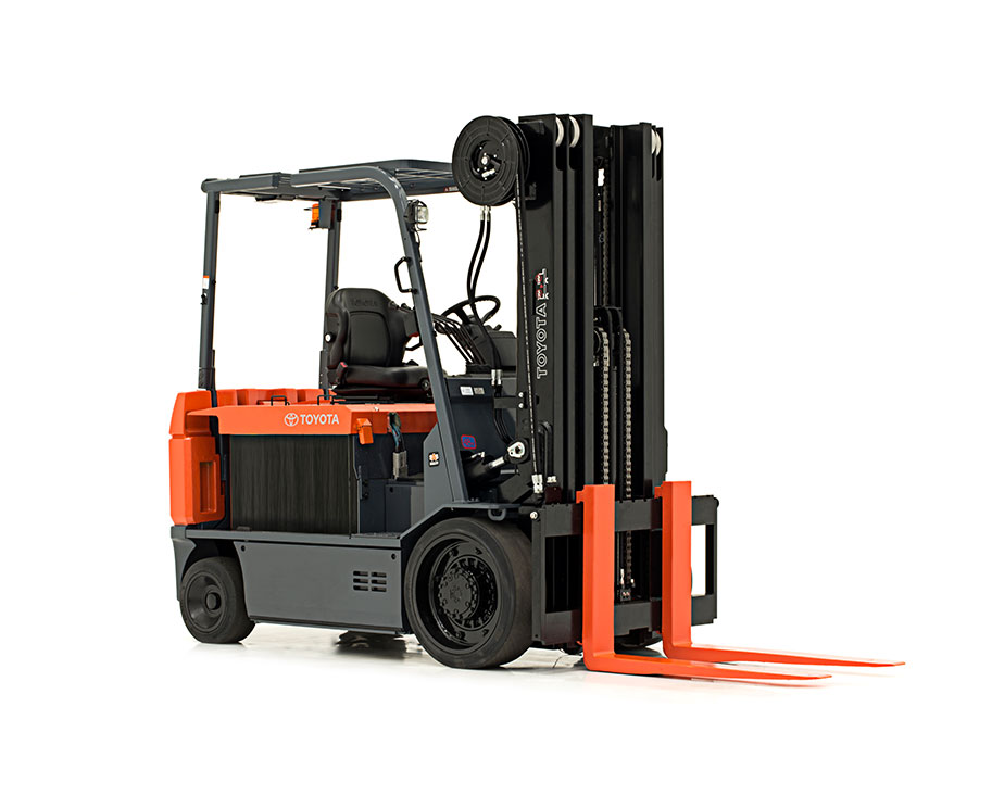 The Toyota Large Electric Forklift is a high-capacity electric forklift solution. With no fumes and limited maintenance costs, the Large Electric has the same advantages of smaller electric forklift models, but the Toyota Large Electric is capable of lifting up to 12,000 lbs. Primarily used in heavy duty warehouses, the Large Electric Forklift is the perfect high-capacity solution for those who value an all electric fleet.
